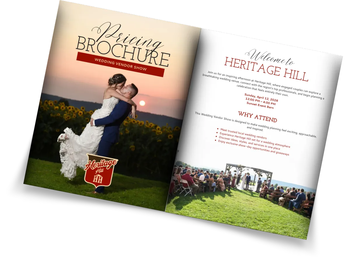 You’re invited to our exclusive Wedding Vendor Show at Heritage Hill Brewery in the beautiful Sunset Event Barn.